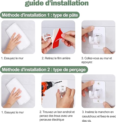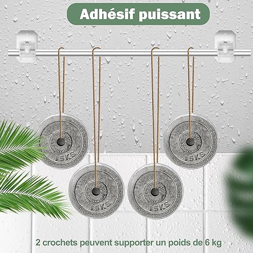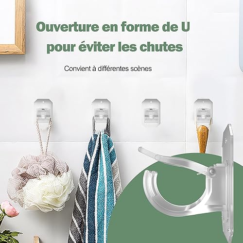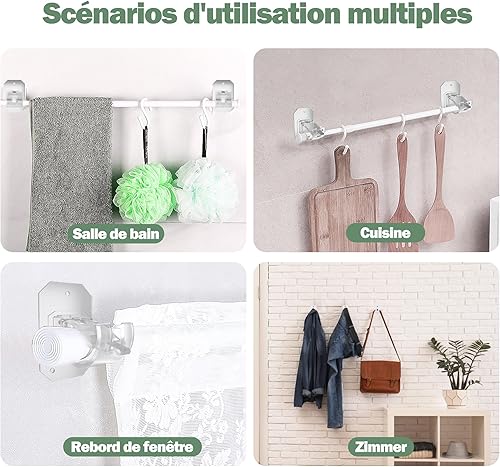 Lot de 2 supports de tringle à rideaux améliorés sans perçage - Supports de tringle à rideaux réglables pour tringles de moins de 4 cm de diamètre - Transparents