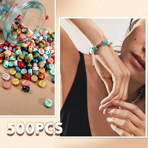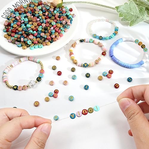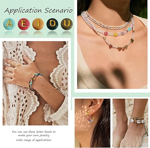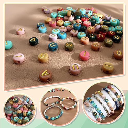 TOAOB 500pcs Voyelle Lettre Perles 4x7mm Rond Coloré Lettre Perles avec Alphabet Or A E I O U Ronde Acrylique Espaceur Perles pour Bricolage Fabrication de Bracelets Colliers Bijoux