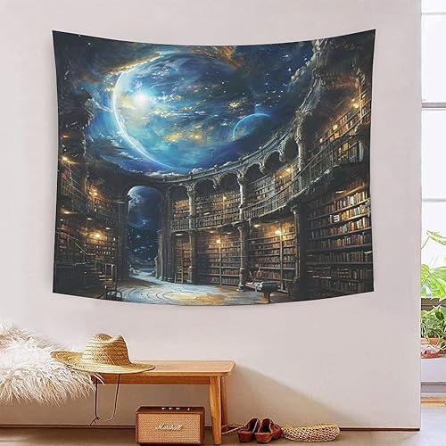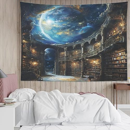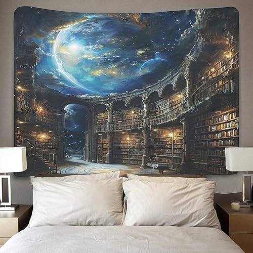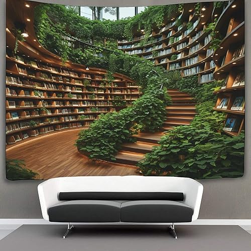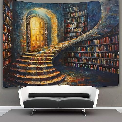 DHBANEIOK étagères de livres 3D Effet Tapisserie Art Mural Tapisserie Murales Tapisserie Murale Tissu Pour Chambre Salon Collège Dortoir Tenture Murale 150cmx200cm
