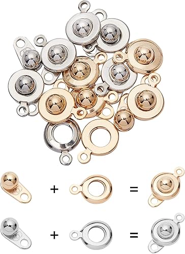 UNICRAFTALE 18 ensemble 3 couleur Fermoirs à Bouton Pression Fermoir Bracelet Fermoirs Acier Inoxydable Fermoir Connecteur Fermoir Rond Bracelet Accessoire pour Fabrication de Bijoux Bracelet Collier