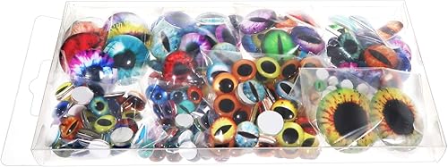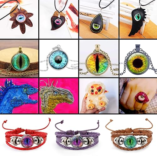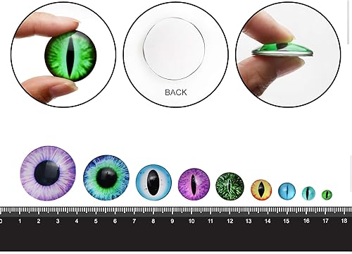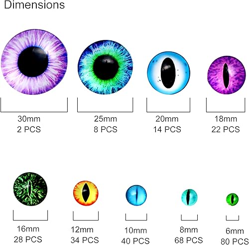 TOAOB 296pcs 6 à 30 mm Taille Mixte Cabochon Verre Mosaïque Cristal Rond Dragon Eye Motif Oil de Chat Yeux de Sécurité Solorés pour La Confection de Poupée ou La Fabrication de Bijoux