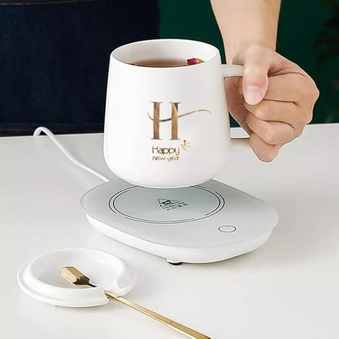 Happy® Tasse avec Coussin Chauffant et cuillère et Coffret Cadeau Unique pour Anniversaire, Noël ou Saint Valentin (Blanche)