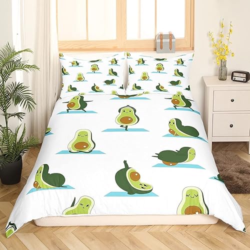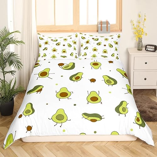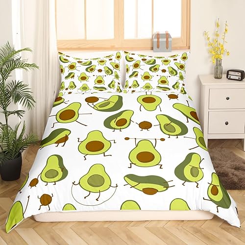 Homemissing Mignon Avocat Housse de Couette 140x200cm Enfants Dessin Animé Avocat Parure Housse de Couette Kawaii Beau Fruits Chambre Décoratif Parure de Lit