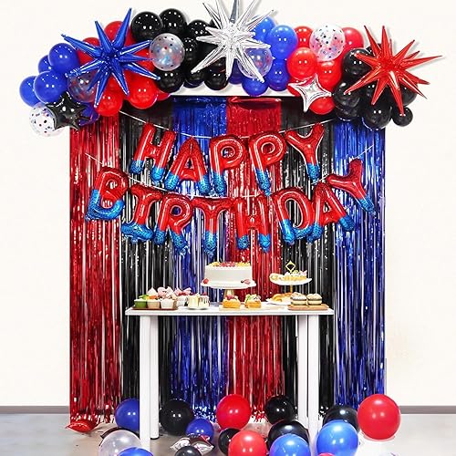 Spider Theme Bannière d'anniversaire Décorations de fête Ballons Lettres Superhero Party Supplies pour garçons (Spider)