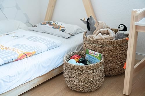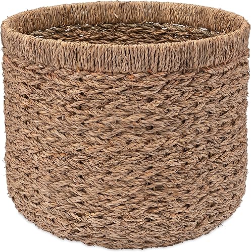 Decorasian Panier de rangement, rond, tissé en jonc de mer, durable