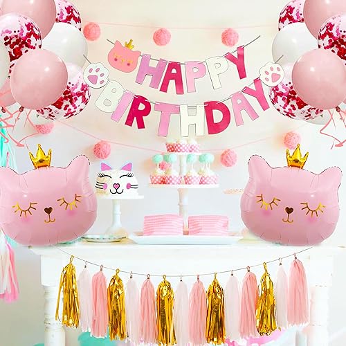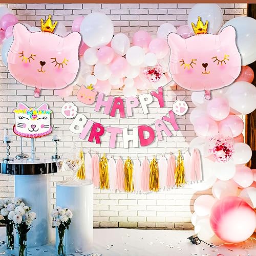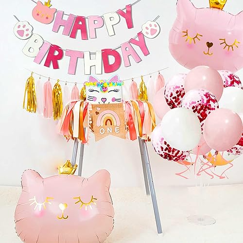 Roaring Good Time décoration d'anniversaire de chat rose cat balloons cat birthday meow banner meow party supplies pink cat cake decoratio