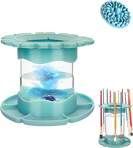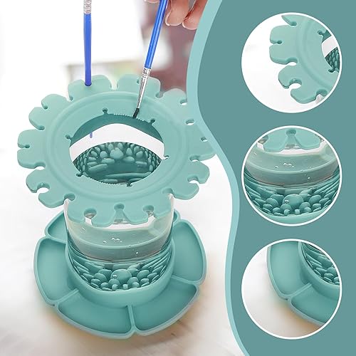 Skeadex Nettoyeur Pinceaux Peinture, Silicone Porte Pinceau Peinture, Supports De Rangement Pour Pinceaux, Gobelet De Rinçage Peinture Studio Maison Aquarelle À Base D'Eau (Bleu, Medium)