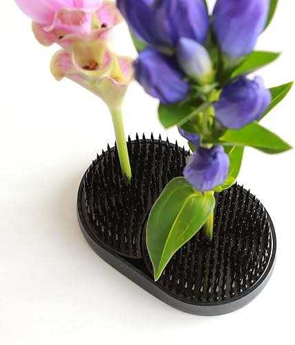 Wazakura Ikebana Kenzan Soleil and Lune - Outil Fabriqué au Japon - Support de Fleurs Japonais Couleur Noir pour Arrangement Floral