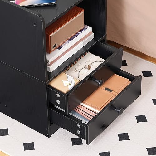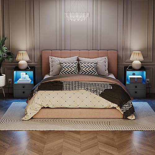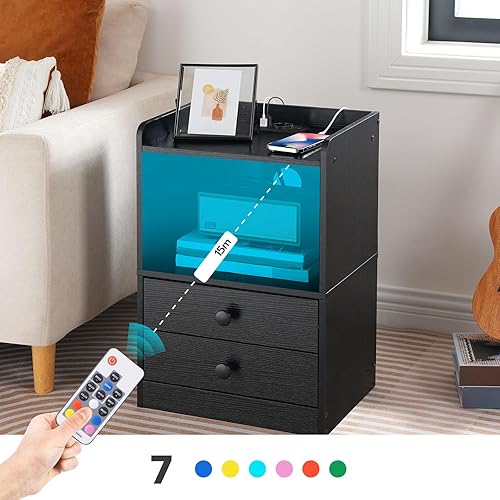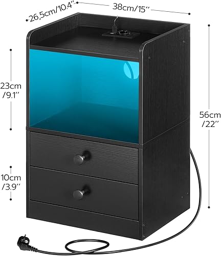 HOOBRO Table de Chevet avec Bande LED, Station de Charge, Table d’Appoint avec 2 Tiroirs, pour Chambre, Salon, Moderne, Blanc EWT28CDBZ01