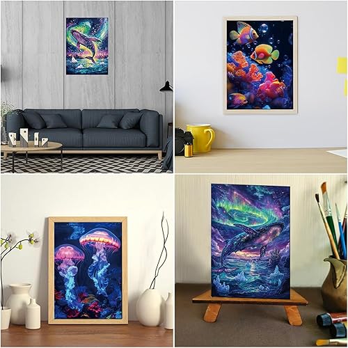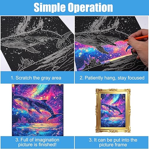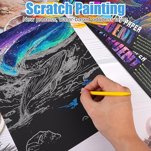 8 Feuilles de Carte a Gratter, A4 Dessin a Gratter Adulte, Scratch Paper Rainbow Painting avec 2 Stylos à Tracer, Magic Scratch art Kit pour Décoration, Excellent Cadeau (Monde de la Mer + Baleine)
