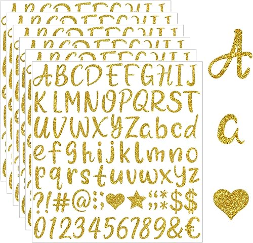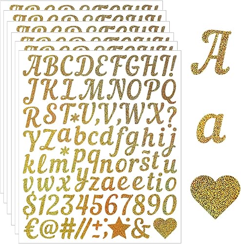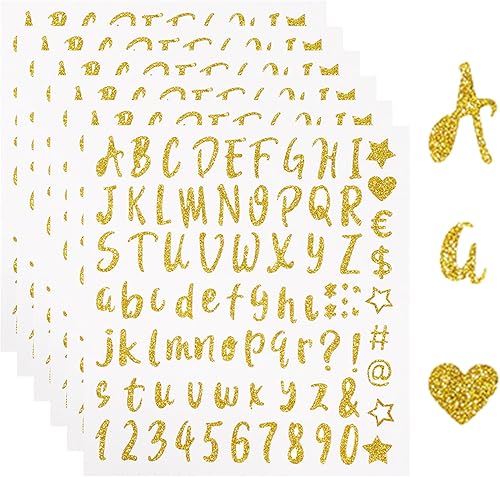 Calkkrer Lot de 6 feuilles d'autocollants dorés brillants en vinyle, résistants aux intempéries, lettres adhésives DIY pour porte, boîte aux lettres, texte souhaité