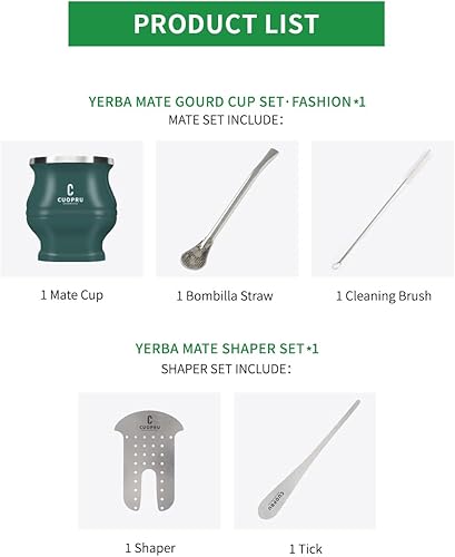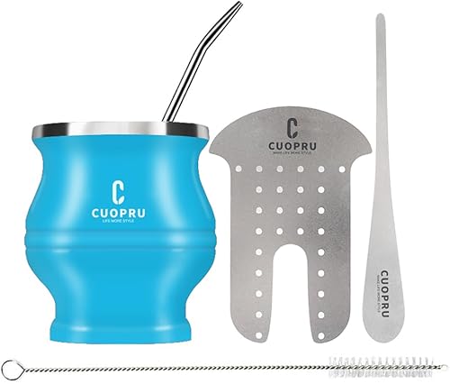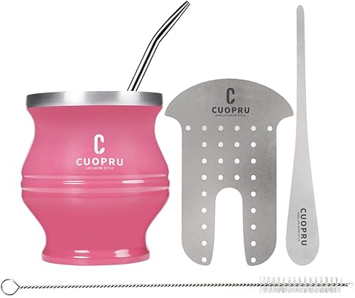 Cuopru Ensemble Yerba Mate Cup et Bombilla – L'ensemble Yerba Mate comprend une tasse moderne mate, un ensemble Yerba Mate Shaper, un Bombilla Mate (paille) et une brosse de nettoyage (orange)