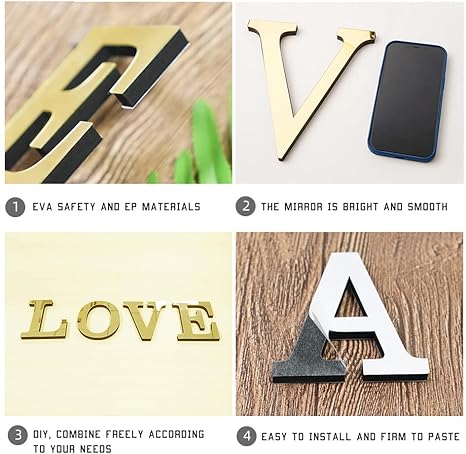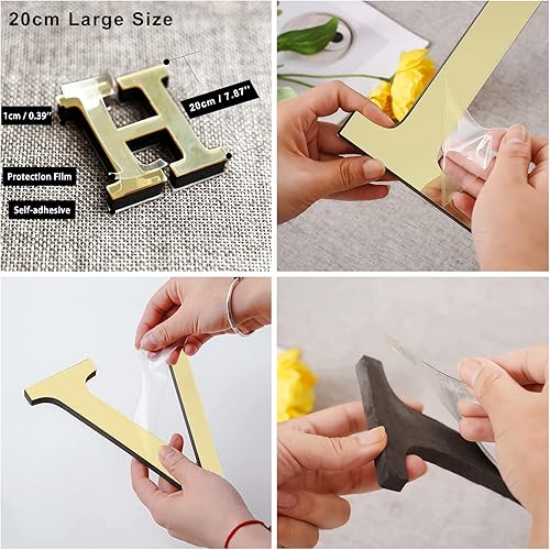 ZoTuoART Doré Lettres Miroir en Acrylique 3D épais de 20 cm - Grande Taille - Autocollants muraux de sécurité - Lettre E