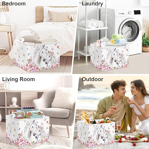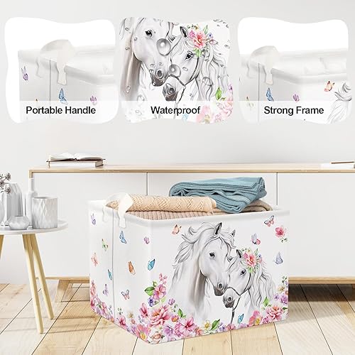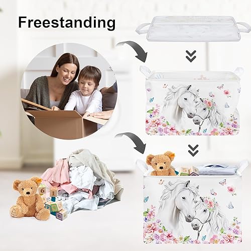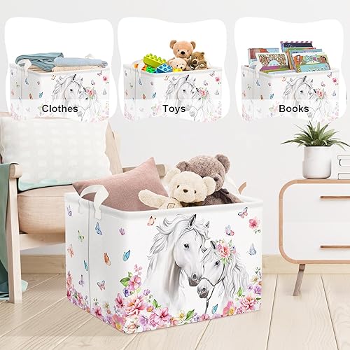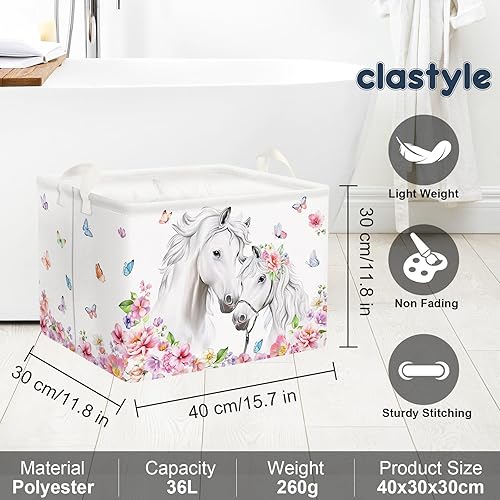Clastyle Panier Rangement Bébé Famille Animaux Corbeille à Linge Sale Garçon Fille pour Vêtement Boite de Rangement Jouet pour Salle de Bain Chambre à Coucher, Cheval, 40*30*30 cm