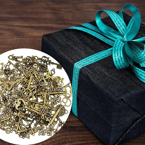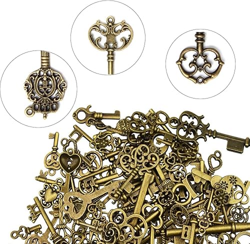 XPEX 125 Pcs Antique Decor,Clefs Anciennes,Pendentifs Décoratifs Vintage en Bronze Antique pour Collier, Mini Porte-Clés Cadeau Pendentif,Fabrication De Bijoux, Bricolage,Clés,Décoration De Mariage