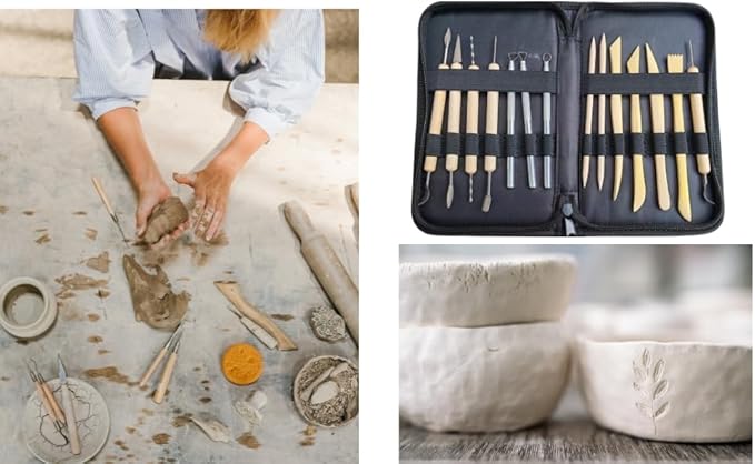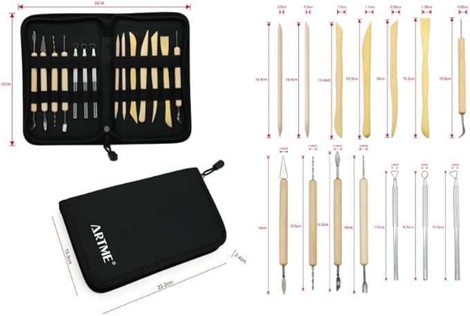 ARTME Outils d'argile, 14 pièces d'outils de poterie en argile polymère, kit de sculpture en céramique avec étui de transport, loisirs créatifs