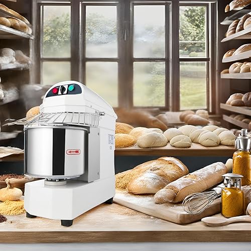 Pétrin à Pâte Professionnel - PESAGE MB - Mélangeur à Pâte Professionnel - Acier Inoxydable et Fonte - 10L - 4kg - 650W - 160t/min - Blanc, Inoxydable