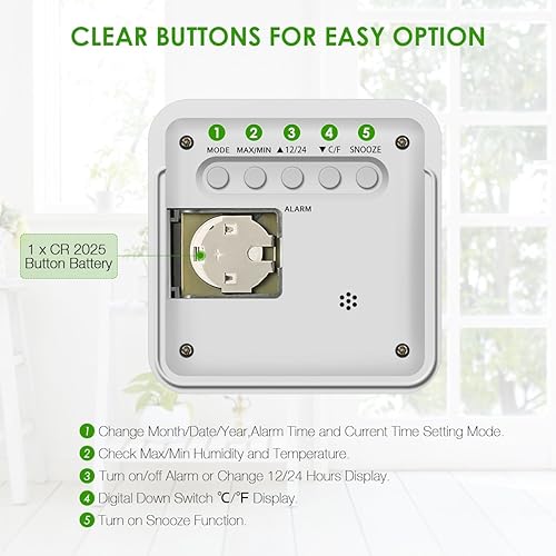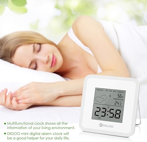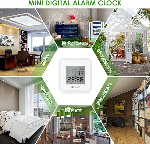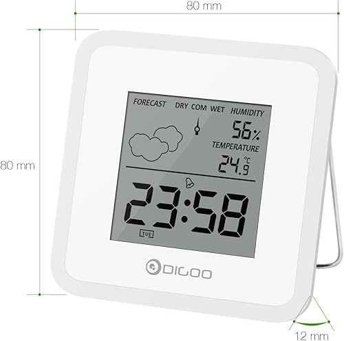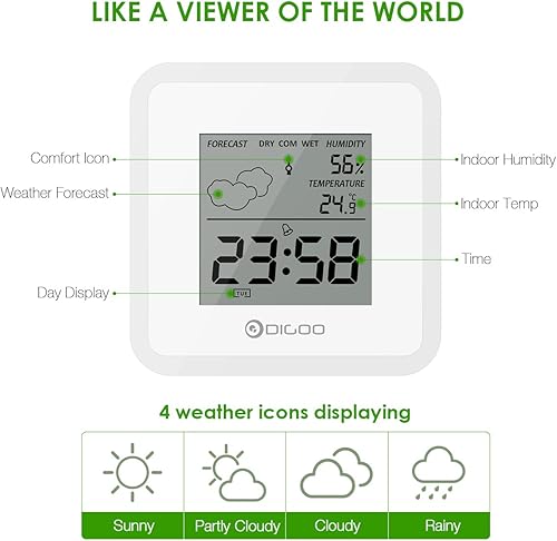 DIGOO Thermomètre Intérieur, Temperature Monitor Hygromètre Capteur Reveil Météo Prévisions, Maison Mini Digital Noir