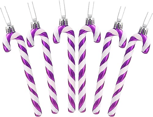 Christmas Concepts® Paquet De 6-13cm (5.2') De Canne en Bonbon Glitter Décorations d'arbre De Noël (Violet & Blanc)