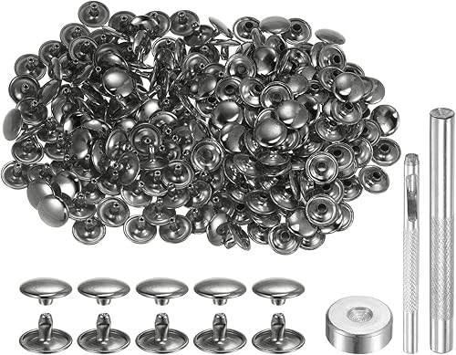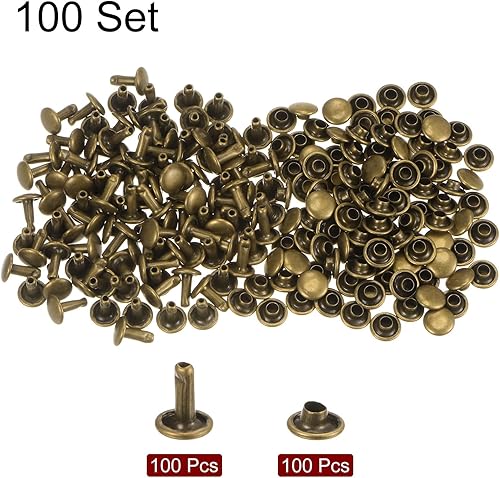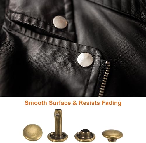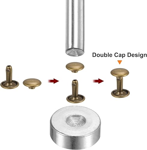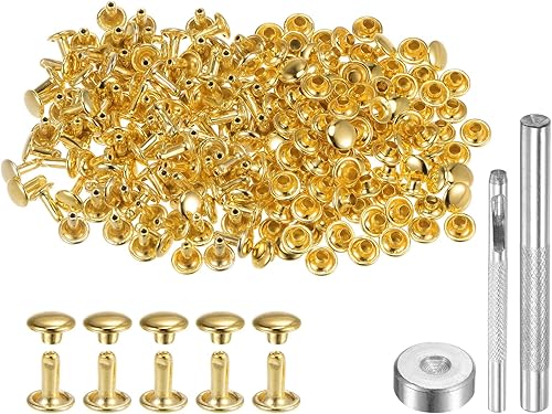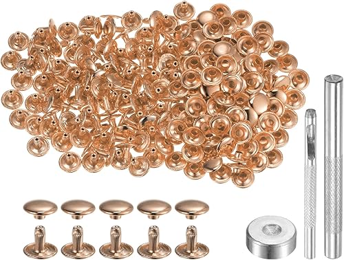 QUARKZMAN 100 Ensembles de Rivets en Cuir 8 x 10 mm, Attaches à Double Capuchon en Métal Attaches Pression, avec 3 Outils de Pose, pour Projets d'Artisanat en Cuir, Ton Doré