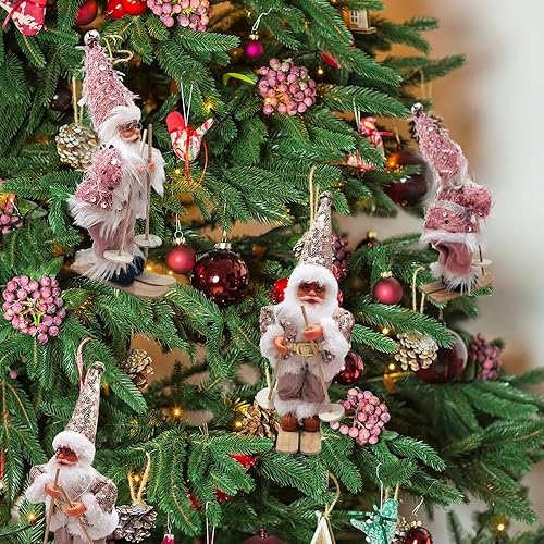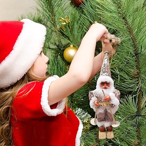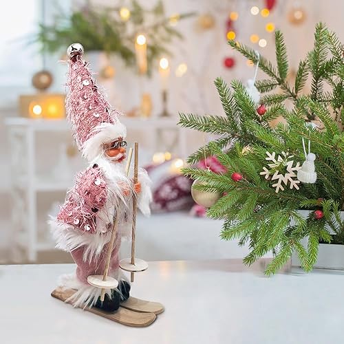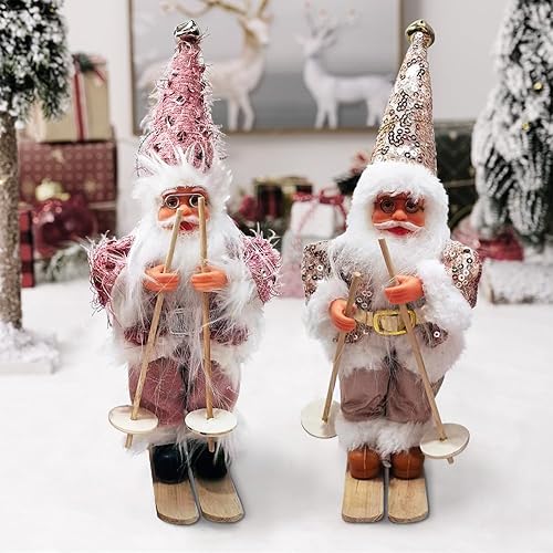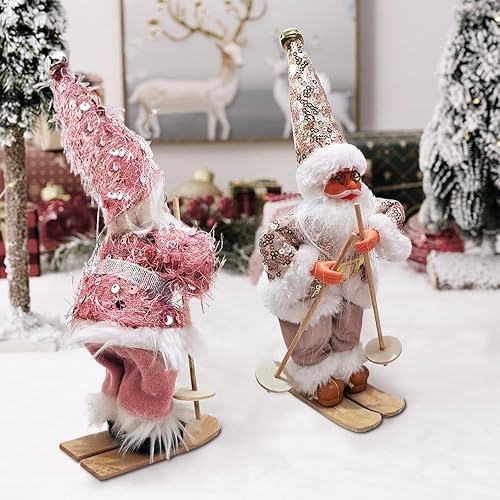 Figurine Pere Noel, Décorations De Noël Originales, Deco Noel Interieur Maison, Gnomes De Noël, Décoration d'arbre De Noël Americaine Pere Noel Déco avec Traineau Santa Ski Sujet Statue 2pcs Set