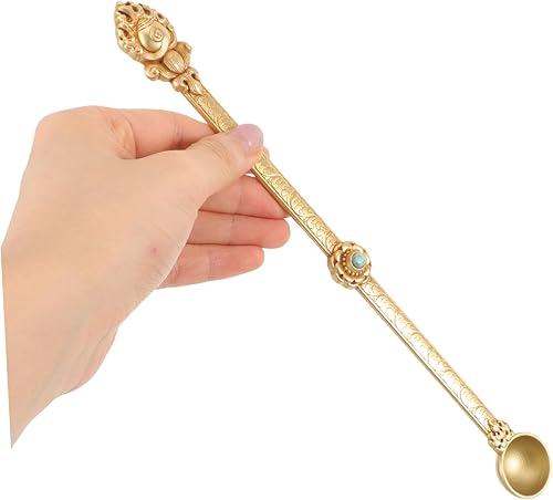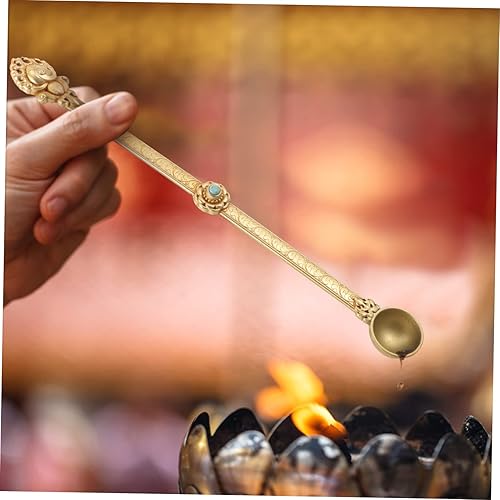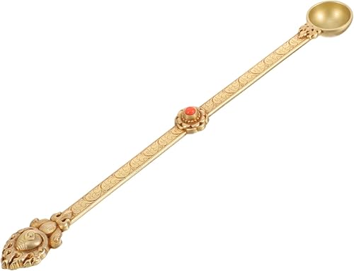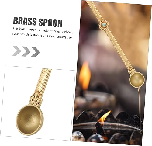 KOCKSHION Cuillère Hawan Laiton Pur pour Offrir Ghee Cuillère Artisanal Sculptée pour Rituels Religieux Et Offrandes Style Antique