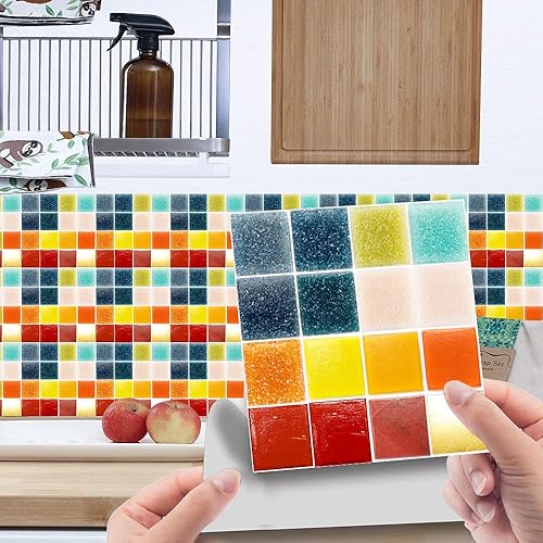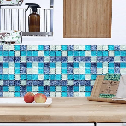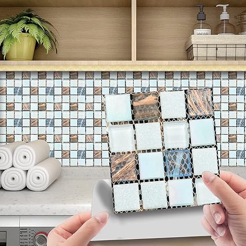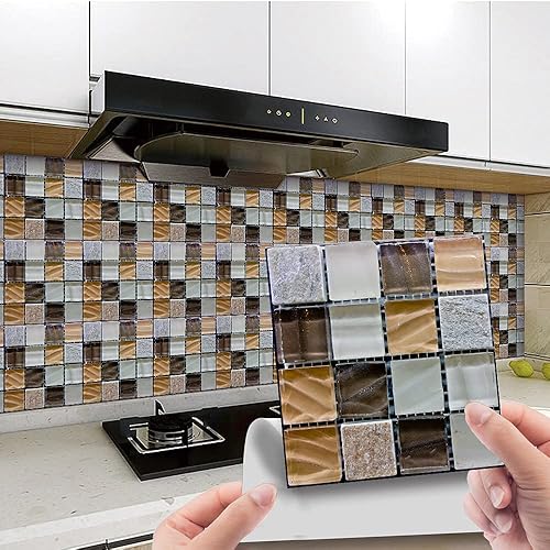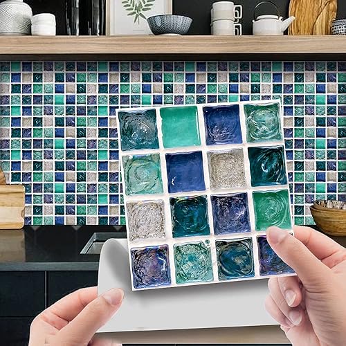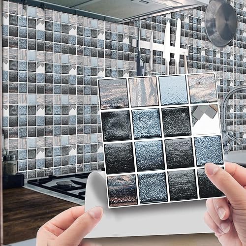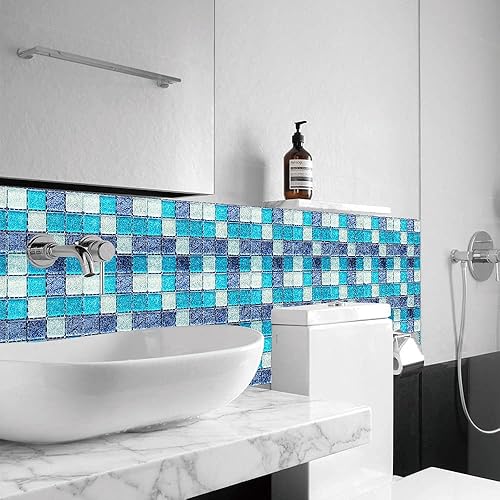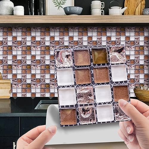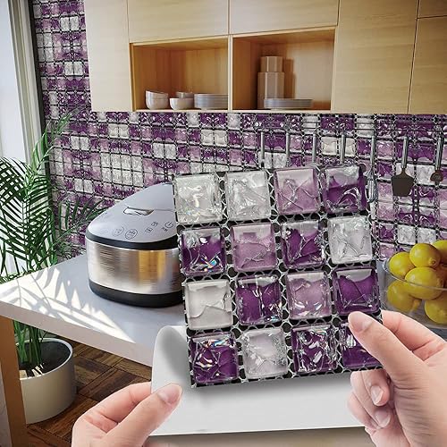 30 Pièces Stickers Muraux Autocollants pour Carrelage en Céramique et Marbre, Salle de Bains et Cuisine Sticker, Hiser 3D Mosaïque Imperméables Auto-adhésifs Décoration 10x10cm (Violet)