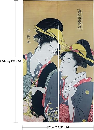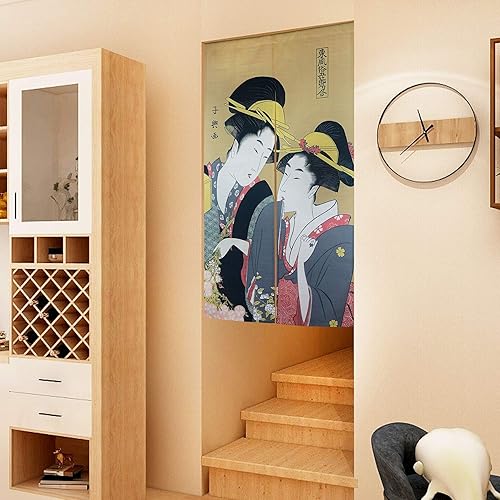 Ligicky Noren Rideau de porte et fenêtre de style japonais Ukiyoe Motif geishas - Décoration d’intérieur pour la maison et la cuisine - 85,1 x 149,9 cm