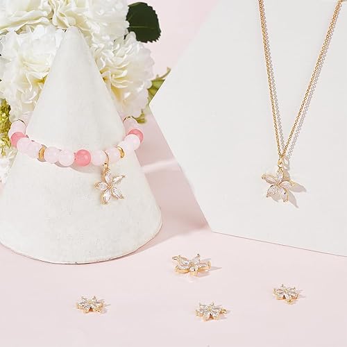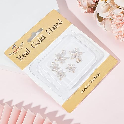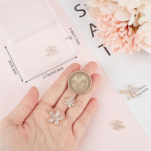 Beebeecraft 1 boîte de 6 breloques en Forme de Fleur en Oxyde de Zirconium Plaqué Or 2 carats avec Strass en Cristal avec Anneau Ouvert pour la Fabrication de Bijoux