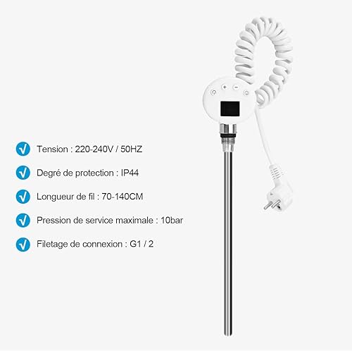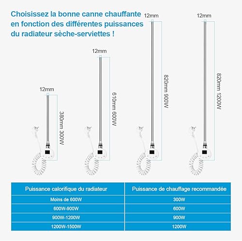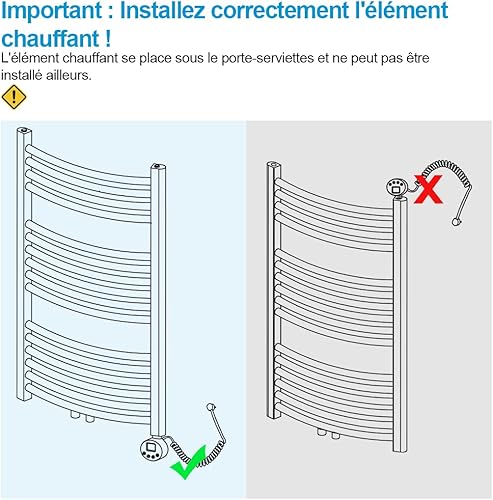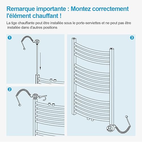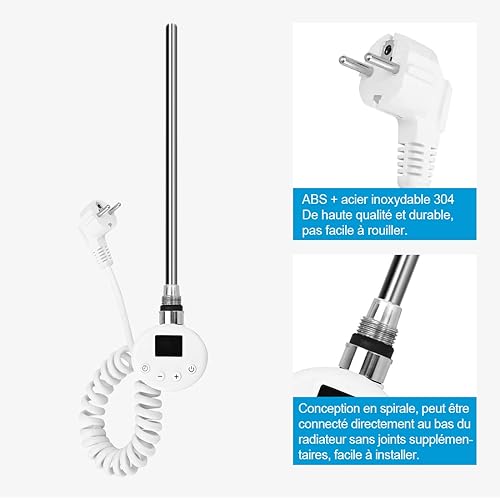 Heilmetz Élément Chauffant pour Radiateur de Salle de Bain avec Thermostat, avec Contrôleur de Température et Fonction de Synchronisation 600W, pour sèche-Serviettes Uniquement