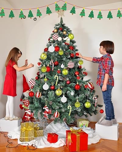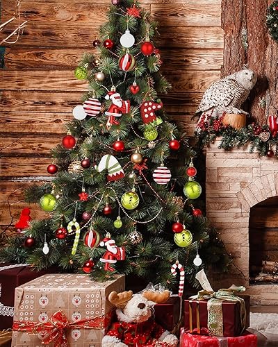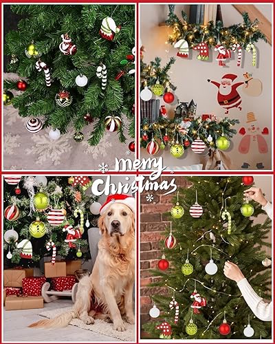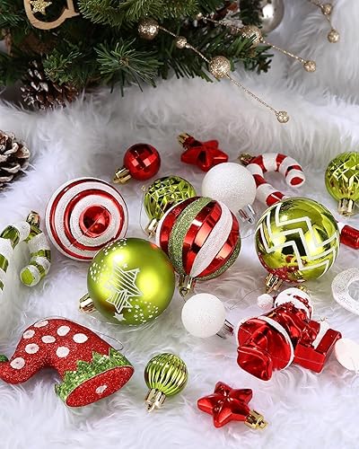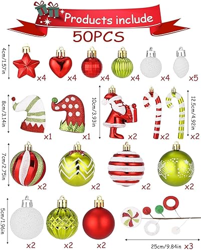 Boules de Noël 50 pièces Boules de Noël Décoration de Noël Boules de Noël en Plastique Boules de Noël Boules de Noël en Plastique Pendentif Elfes Set de décoration de Sapin de Noël Rouge Vert Blanc
