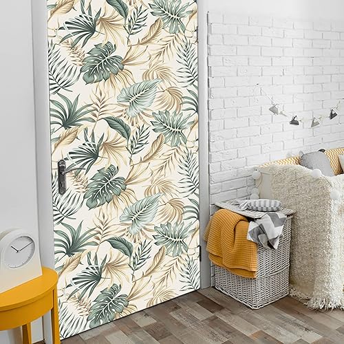 Stickers Porte 77X200Cm Feuilles De Palmier Autocollants De Décoration Pour Porte 2Pcs Chambre Sticker Porte,Porte Autocollant En Pvc Auto-Adhésifs,Décoration Murale, Polyvinyle