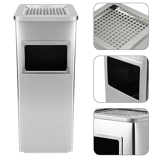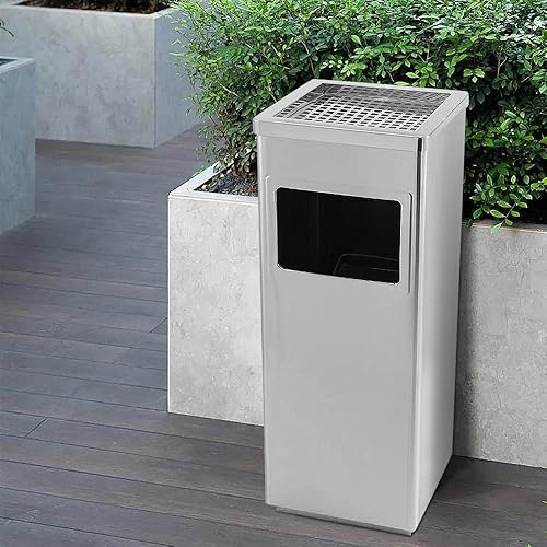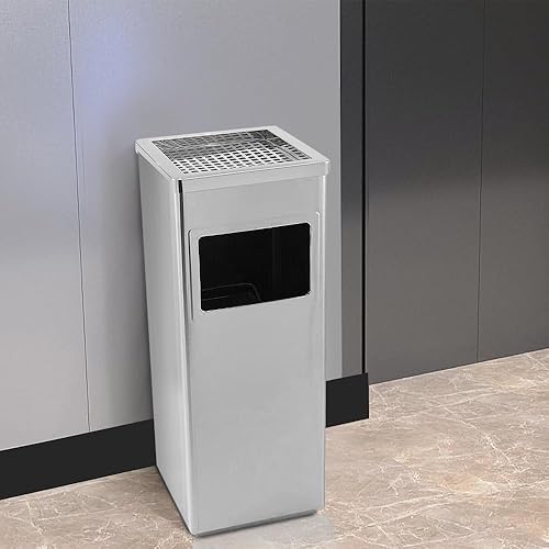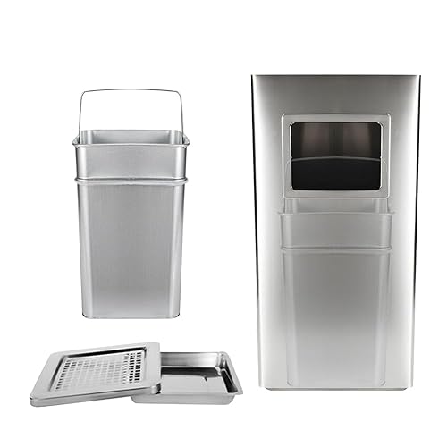 MUL-BOUTIQUE Poubelle Double Paroi avec Cendrier, 30x24x60cm, Bac Intérieur Amovible en Acier Galvanisé (Argent)