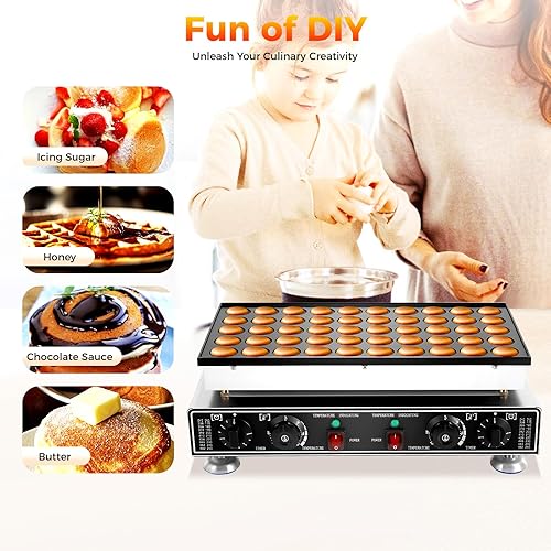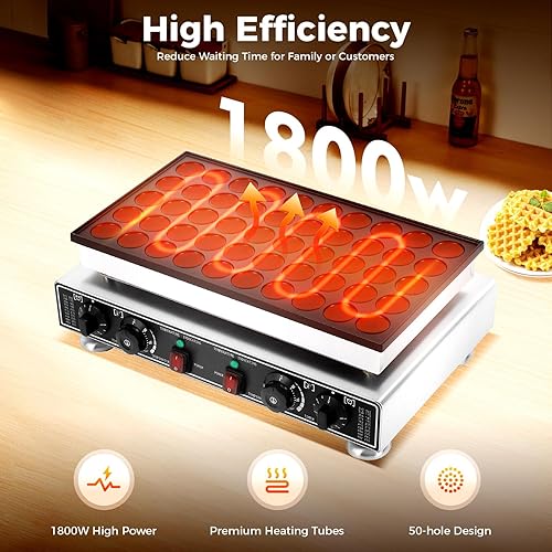 JJsdwin Machine à pancakes à 50 trous avec fouet, 4 éponges de nettoyage et 2 brosses, machine à crêpes à muffins pour cuisine et restaurant, 50-300 °C