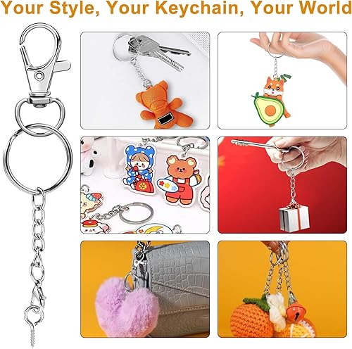 150 pièces anneaux porte clé avec chaîne – Set complet attache porte clef, crochet porte clef, anneaux bijoux et accessoires pour fabrication de porte-clés et bijoux DIY (argenté)
