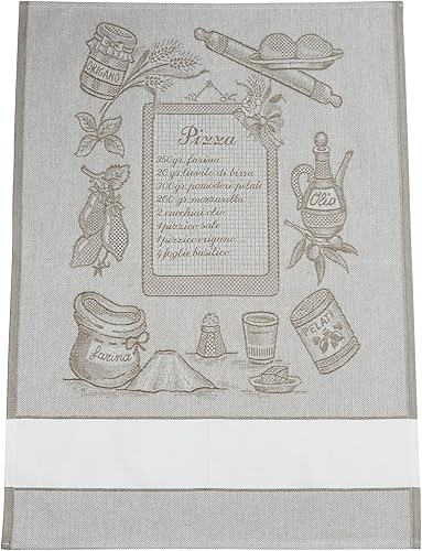 Filet - Lot de 2 torchons de Cuisine en Jacquard avec Insert en Toile Aïda 5.5 PTS/cm à Broder, Parfaits pour sécher la Vaisselle, fabriqué en Italie, Motif Pizza, Couleur Rouge et Corde