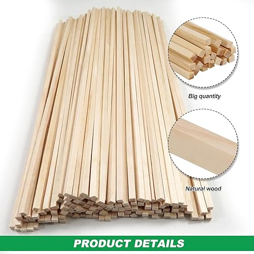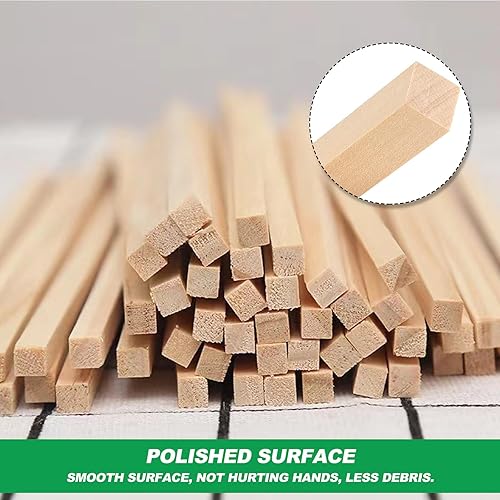 Lot de 50 baguettes en bois pour le bricolage - Carrés - 30 cm de long - Baguettes en bambou pour bricolage