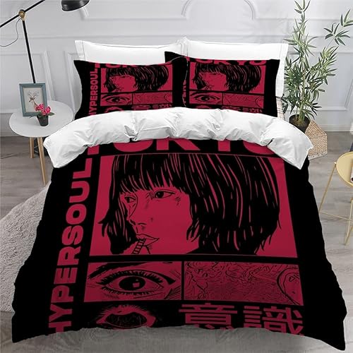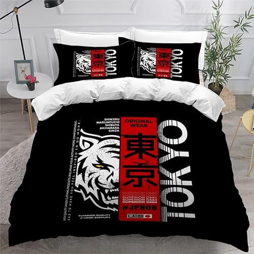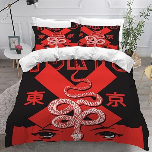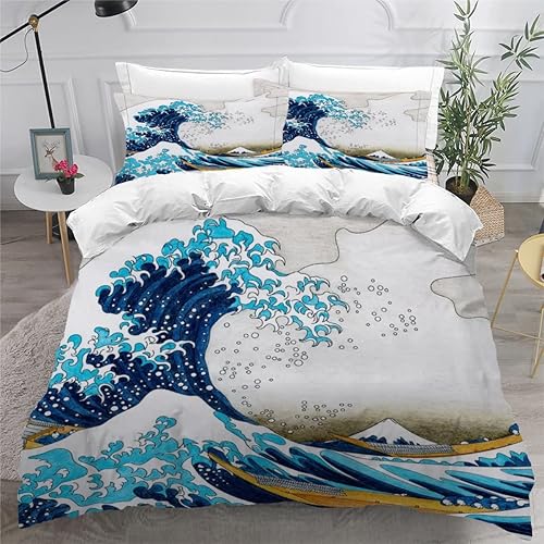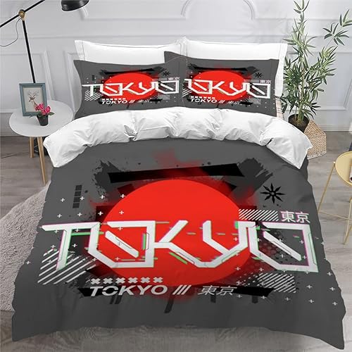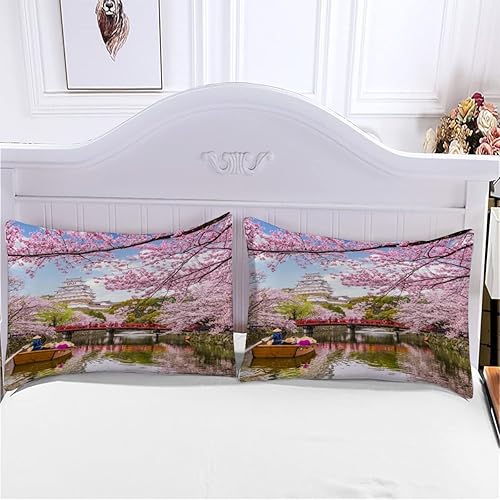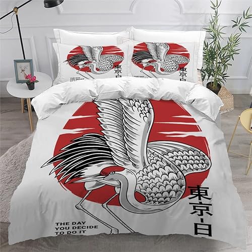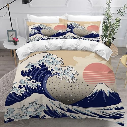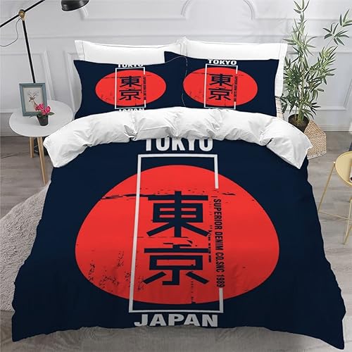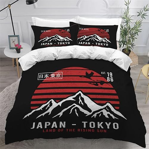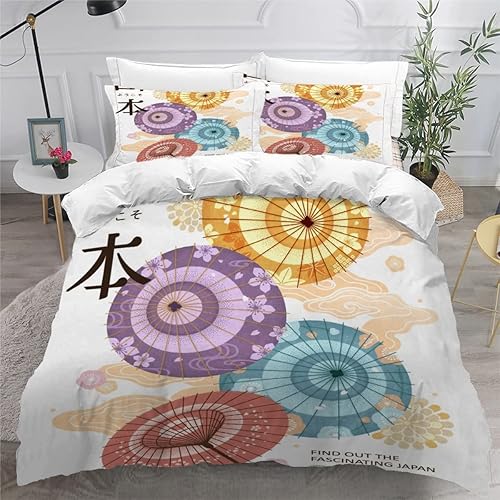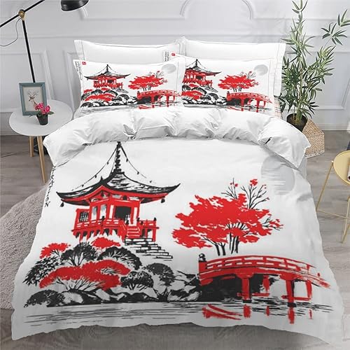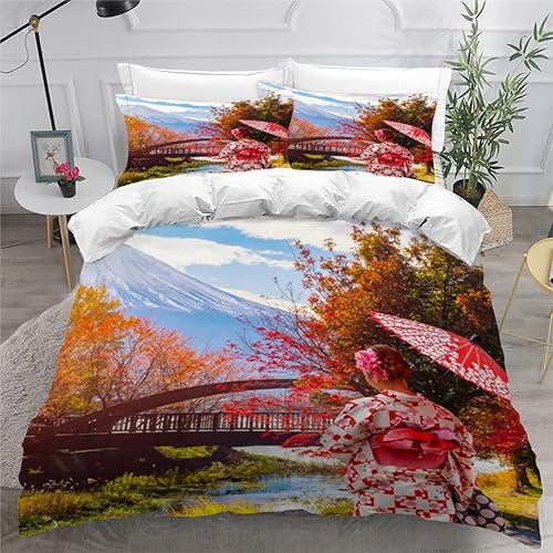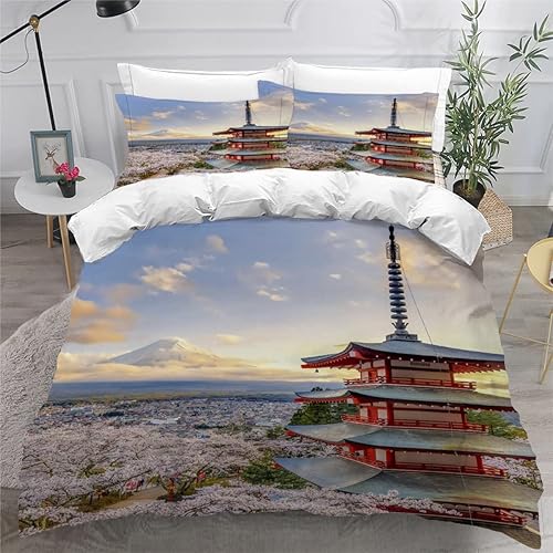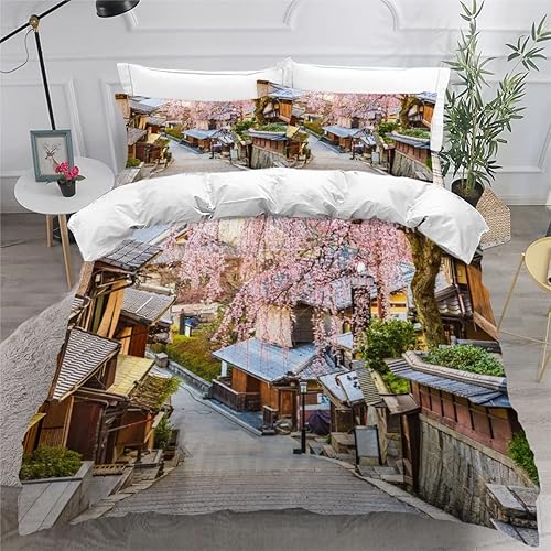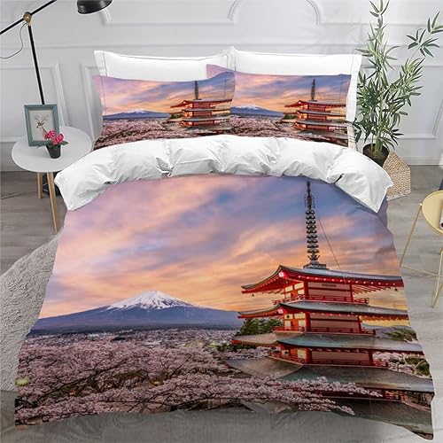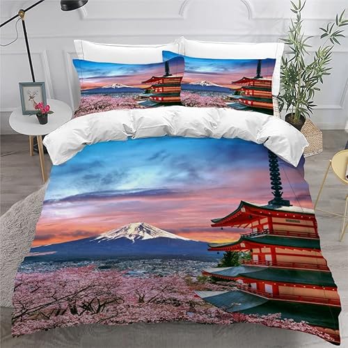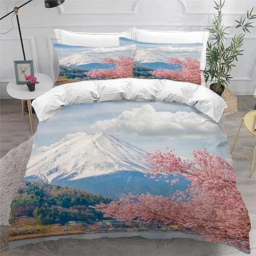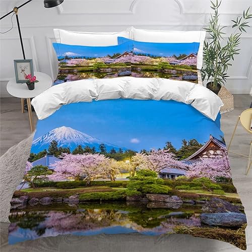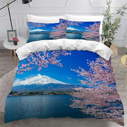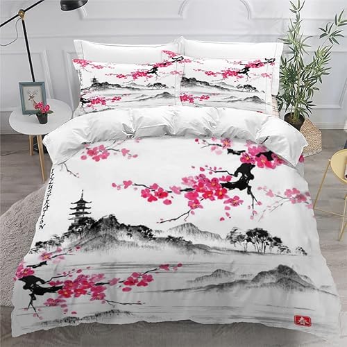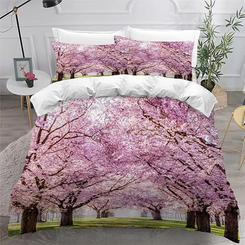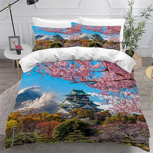 RLYXGS Housse De Couette 140x200cm Enfant Ado Fleurs De Cerisier Parure de lit 3D Japon Ensemble de Literie 1 Personnes avec Fermeture Éclair Et 2 Taies D'Oreill 3 pièces pour Garçon Fille Adulte