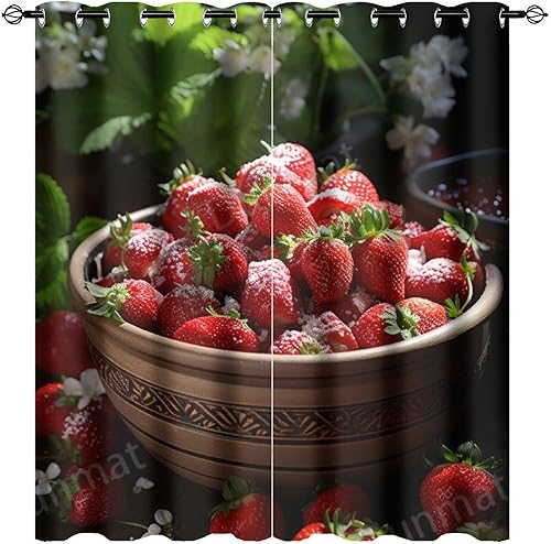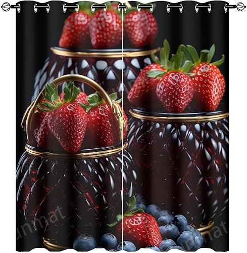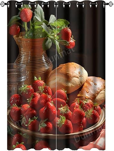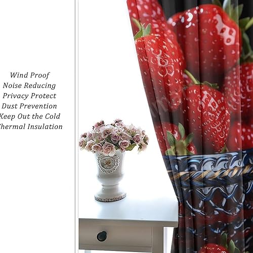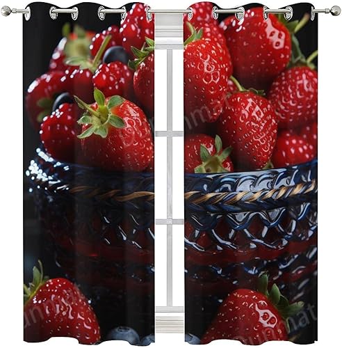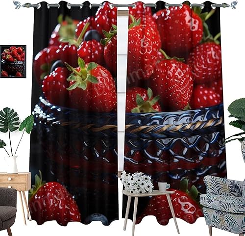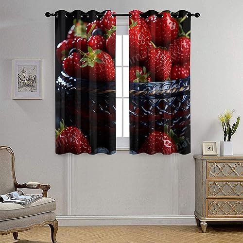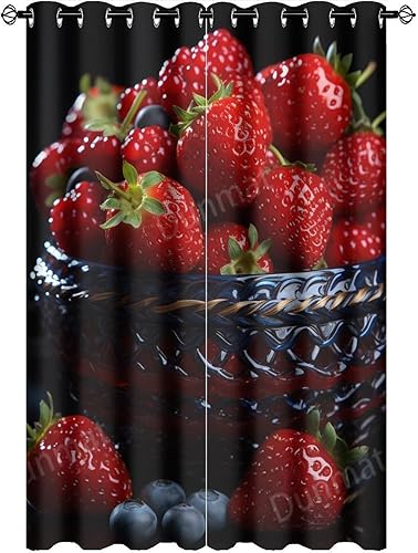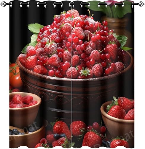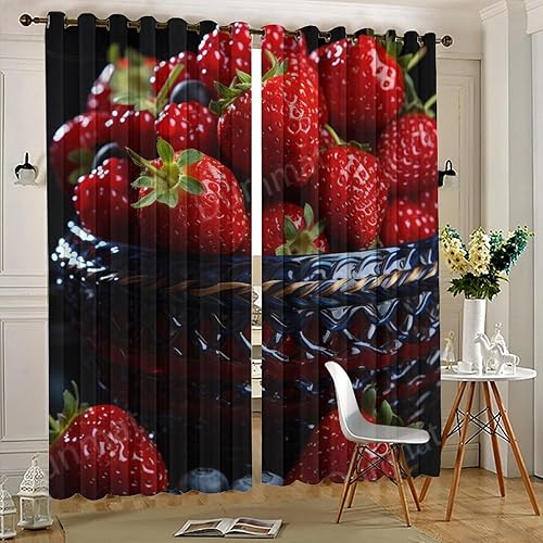 DEBAOKA Lot de 2 rideaux occultants modernes à œillets avec motif fraises et fruits délicieux pour chambre à coucher