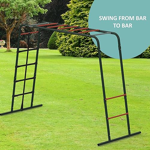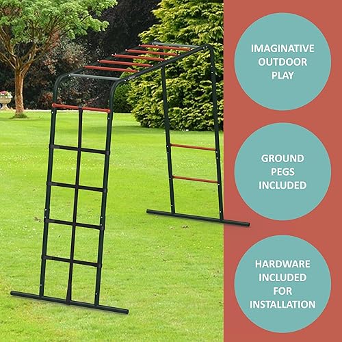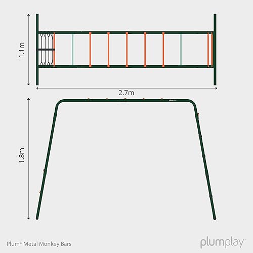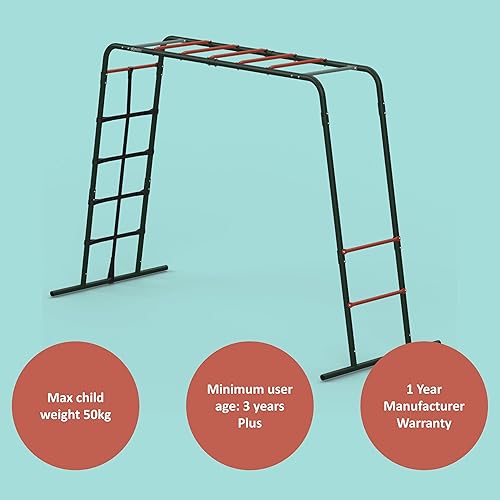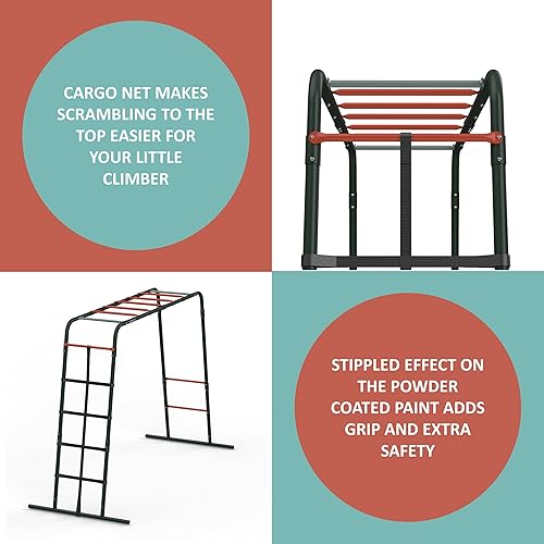 Plum Play Monkey Bars Cadre d'escalade en métal avec revêtement en poudre pointillée pour une meilleure adhérence et soutien – Filet d'escalade – Utilisateur maximum 50 kg – Utilisateur minimum à