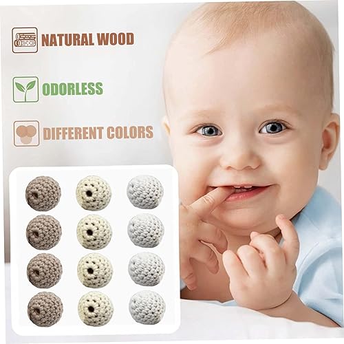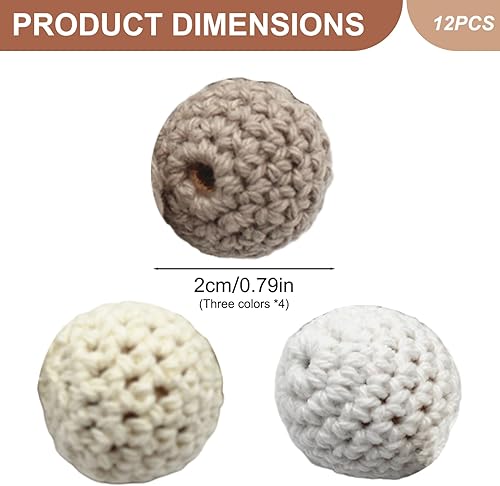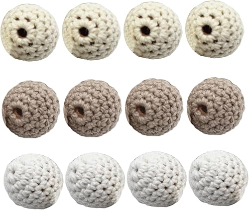 Perles de 20 mm, perles de crochet 12 pcs, tricot en bois 20 mm avec trou, boules crochet rond pour bijoux, décorations, colliers et bracelets
