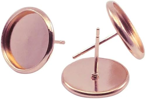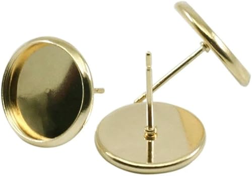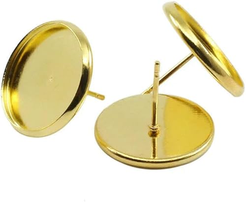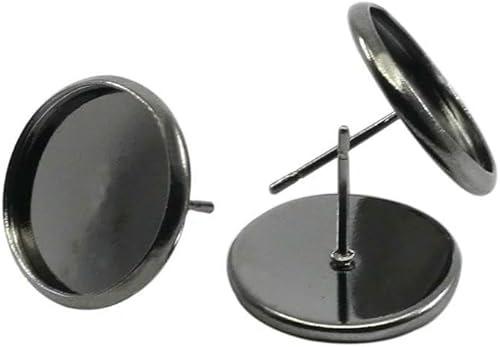 MIONGKI Lot de 20 à 50 Supports de Boucles d'oreilles Vierges en Acier Inoxydable, cabochon, camée, 8, 10, 12, 14, 16 mm, pour la Fabrication de Bijoux