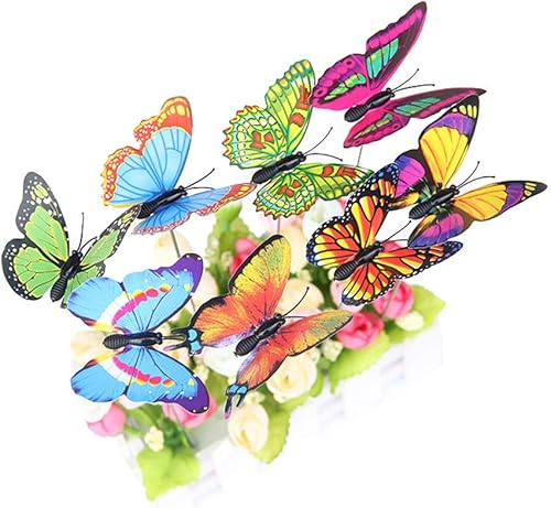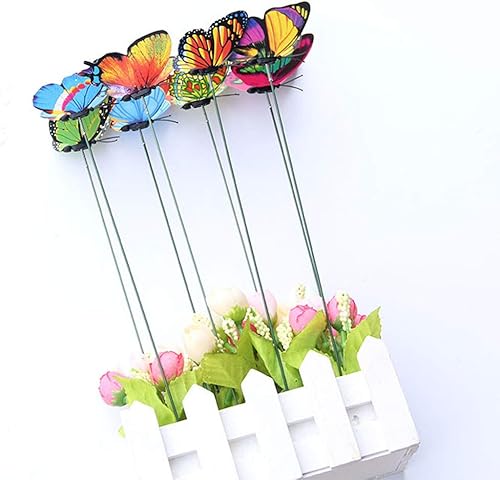 Lot de 25 papillons décoratifs de jardin, papillons colorés sur bâtons, tiges de papillons de jardin, décorations de jardin, décoration de jardin pour jardin, terrasse, pot de fleurs, balançoire (A,