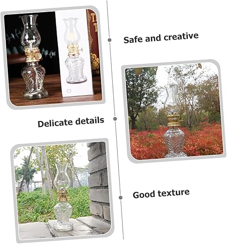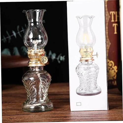 DECHOUS Lampe À Kérosène Vintage Verre Transparent Lanterne À Huile Rétro pour Décoration Intérieure avec Mèche Et Éclairage
