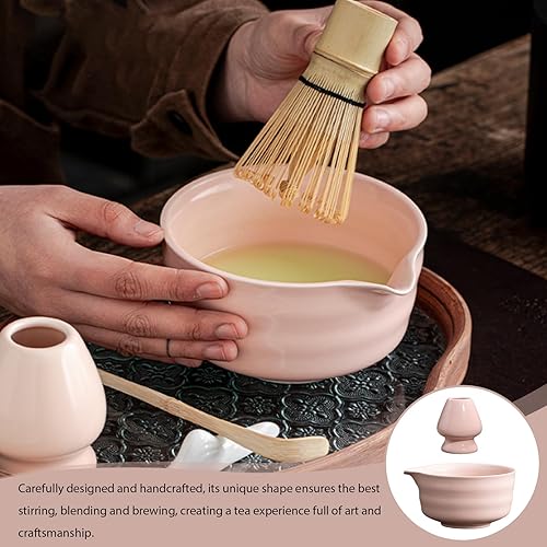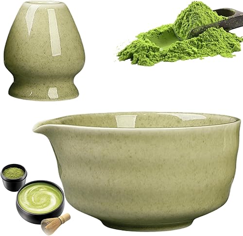 GOMETY Bol à matcha japonais avec bec verseur, bol à thé Chawan avec repose-fouet, bol traditionnel en céramique pour matcha, bol à matcha, bol à thé Chawan, bol à matcha en céramique (couleur matcha)