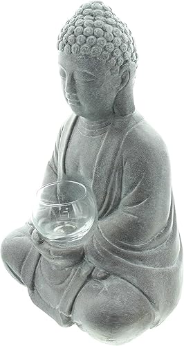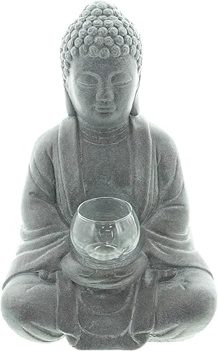 Dekoleidenschaft Figurine décorative Bouddha illuminée en ciment aspect pierre avec photophore en verre 33 cm de haut Décoration de jardin pour l'extérieur
