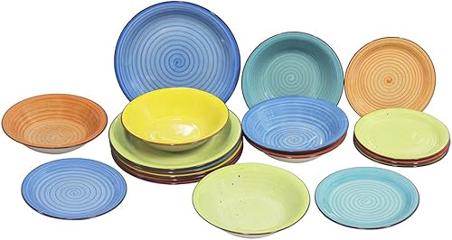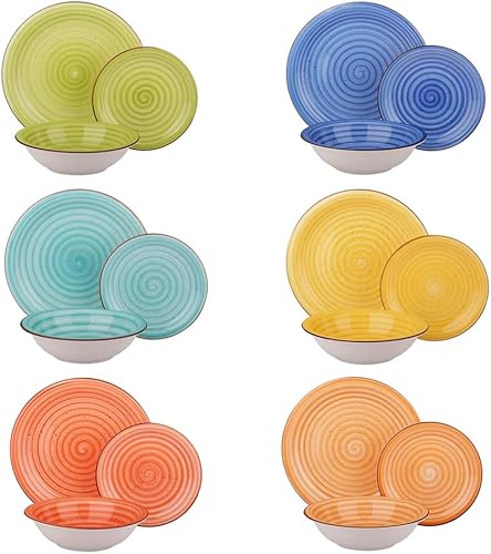 Shally Dogan Service d'assiettes pour 6 personnes en céramique multicolore, lot de 18 pièces servi de table colorée en grès cérame, assiette, assiette, fruits ou sucrés, accessoires de cuisine design