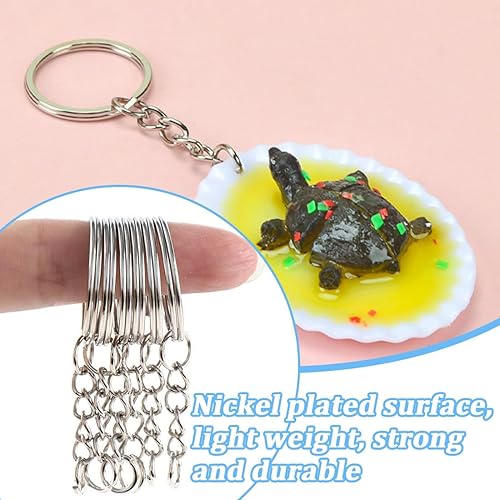 WeddHuis 100 Pièces Kit de Fabrication de Porte-clés (50 Anneaux de Porte-clés avec Chaîne + 50 Vis à Œillet) Anneaux de Clés avec Chaîne pour Clés DIY Bijoux Sacs (25mm) (Argent)