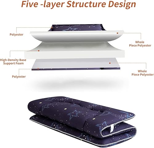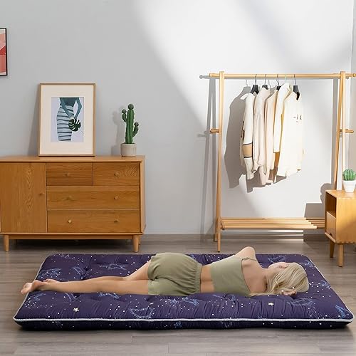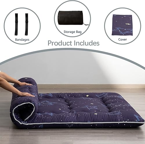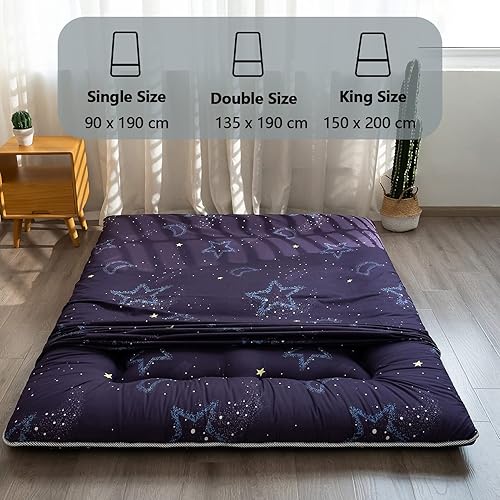 YOSHOOT Rêver Lune Matelas Futon Lit D'appoint de Sol Japonais Lit Pliable 1 Personne Tatami Tapis de Sol Portable, Matelas de Camping Enroulable de Chaise Longue canapé Futon, 135 x 190cm