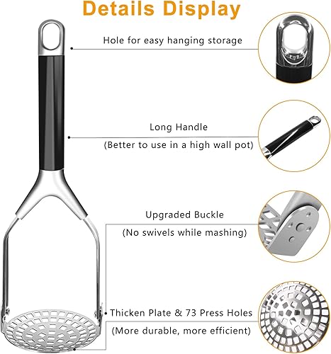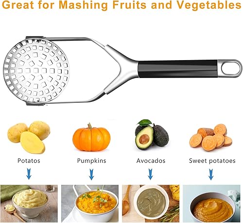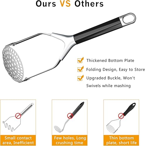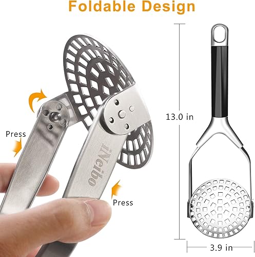 iNeibo Presse Puree Manuel Pliable, Presse Purée Professionnel en INOX avec Poignée Antidérapante en ABS Haut de Gamme, Ecrase Pomme de Terre, Légumes, Fruits et Nourriture bébé